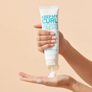 Create a naturally defined curly look with ELEVEN Keep My Curl Defining Cream. This anti-frizz styling cream adds hydration and lightweight hold to curls without the crunch or crispiness of a gel or mousse.